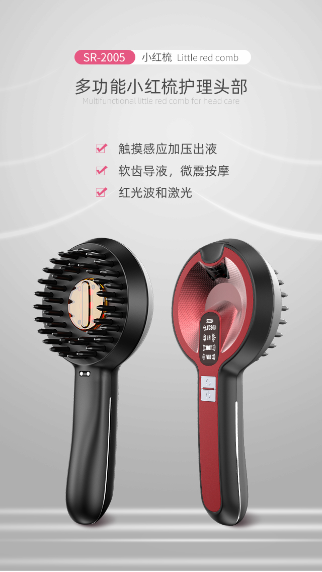 VIB:振动按摩,3个档位。HOT:梳齿加热,1个档位。IR: 6颗630nm红光波,3颗655nm红外光波。