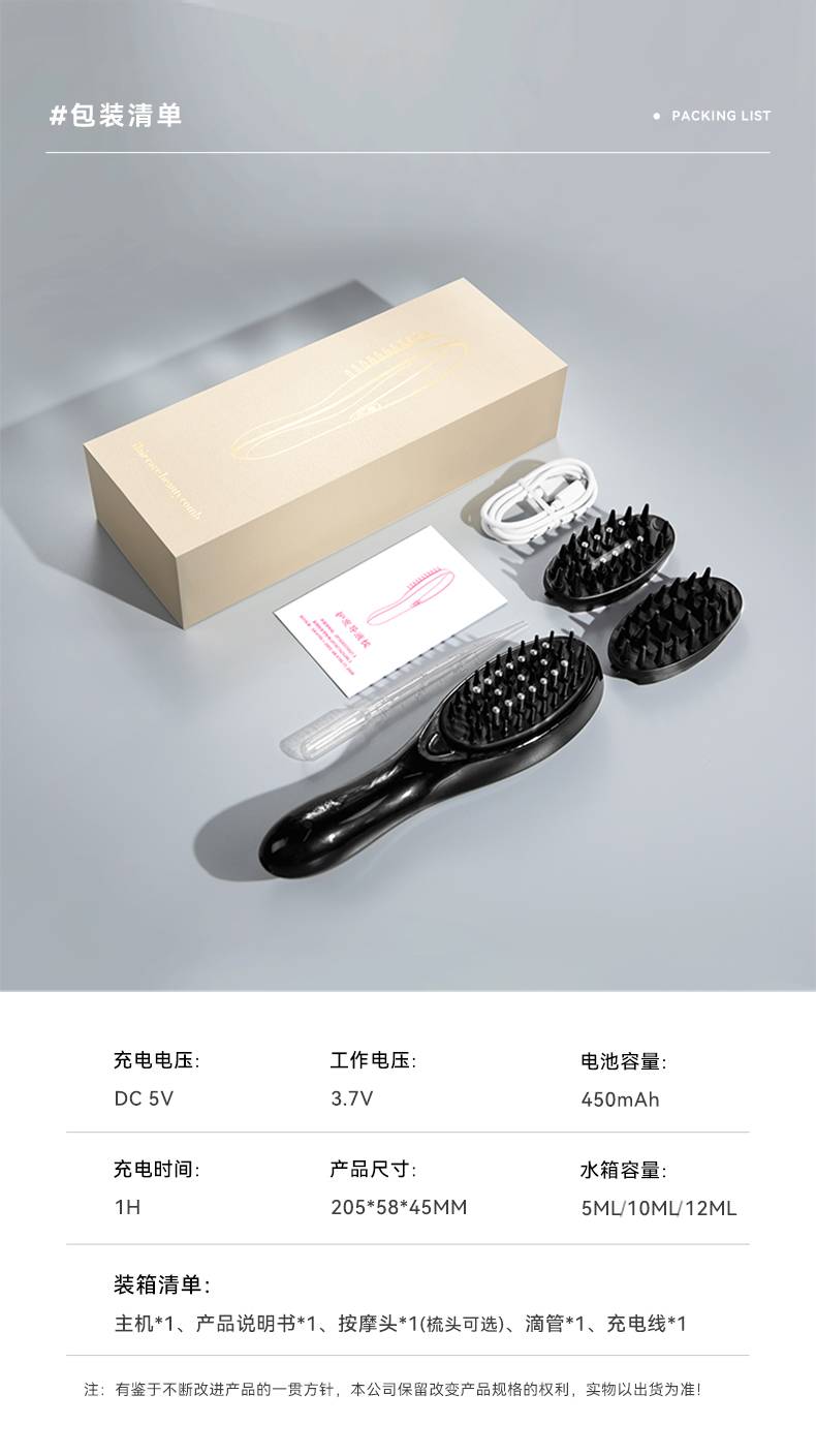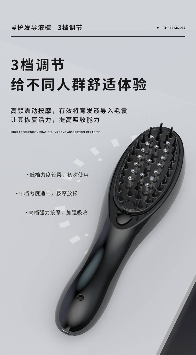 电动按摩梳 头皮上药防脱导入日本柳屋生发液充电式护发梳 厂家批发ODM-恒盛注册